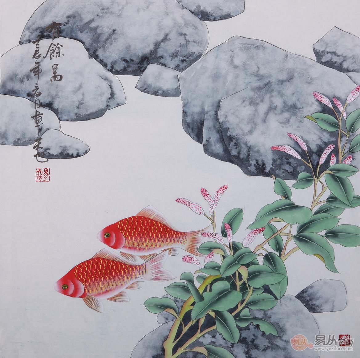 易天也的作品极有意味,两条鱼自由自在的遨游,新婚夫妇的卧室特别适合挂这种图片,共同寓意着富贵、长春不败,是卧室里挂画的绝佳选择。